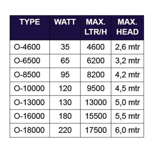 Výkonostní křivka/fotogalerie produktu AquaForte O-13000