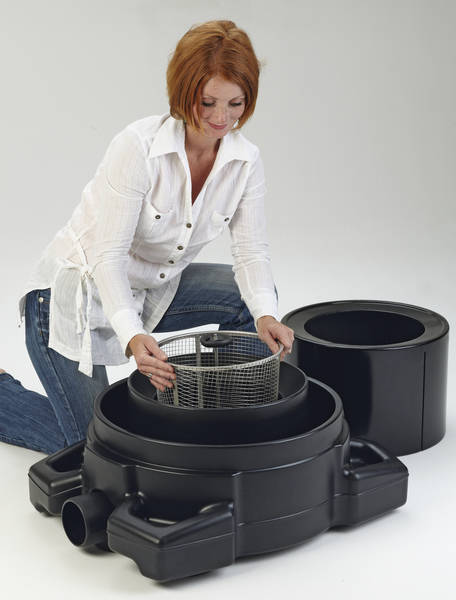 Vhodný pro gravitační i čerpadlový způsob zapojení. Filtrační koš z ušlechtilé oceli je schopen zachytit až 12 litrů hrubých nečistot.